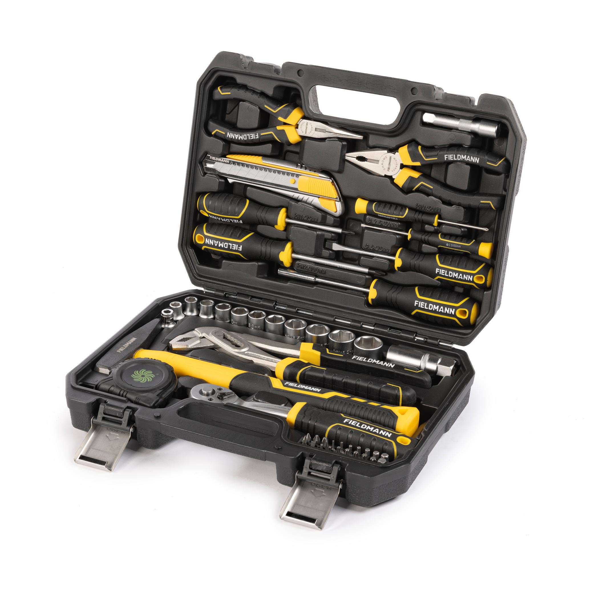 Dodatkowo zestaw obejmuje różnorodne szczypce, w tym uniwersalne, długie oraz do pomp wodnych, a także młotek maszynowy i miarkę 3 m, które idealnie nadają się do różnorodnych zadań montażowych i budowlanych. Zestaw bitów (20 sztuk) oraz adapter umożliwiają pracę z różnymi wkrętami, a dołączone śrubokręty, w tym precyzyjne, zapewniają wszechstronność w wykonywaniu detali. Wysokiej jakości nóż z ostrzami 18 mm dodaje funkcjonalności i bezpieczeństwa podczas prac wymagających precyzyjnego cięcia.